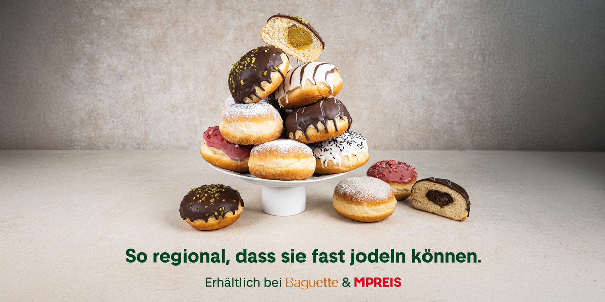 Jetzt ist Krapfenzeit. Doch bei MPREIS und Baguette gibt es viel mehr als nur klassische Faschingskrapfen. Entdecke jetzt die unglaubliche Krapfenvielfalt aus regionalen Zutaten aus der Bäckerei Therese Mölk.